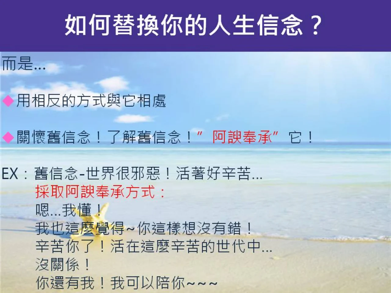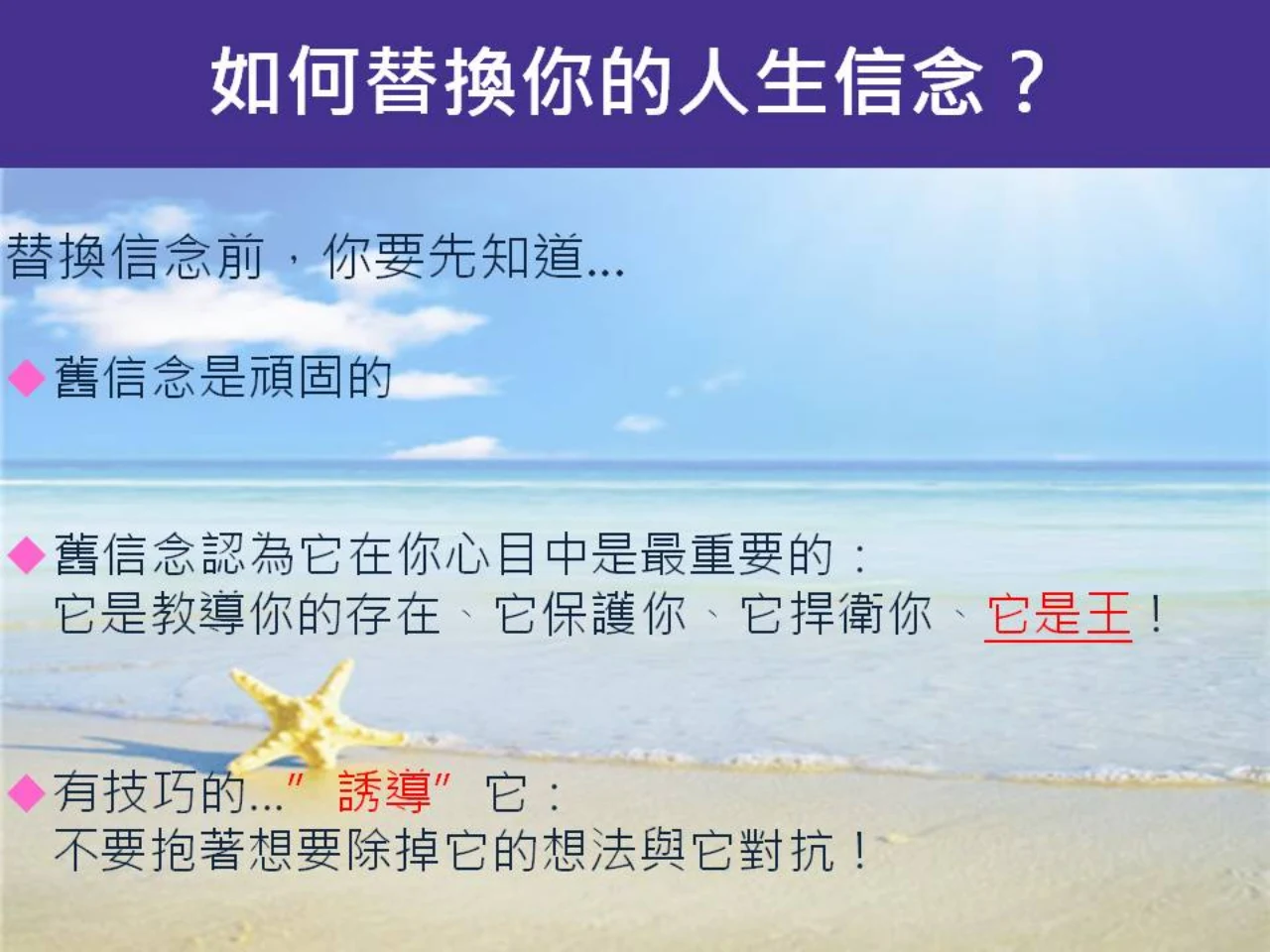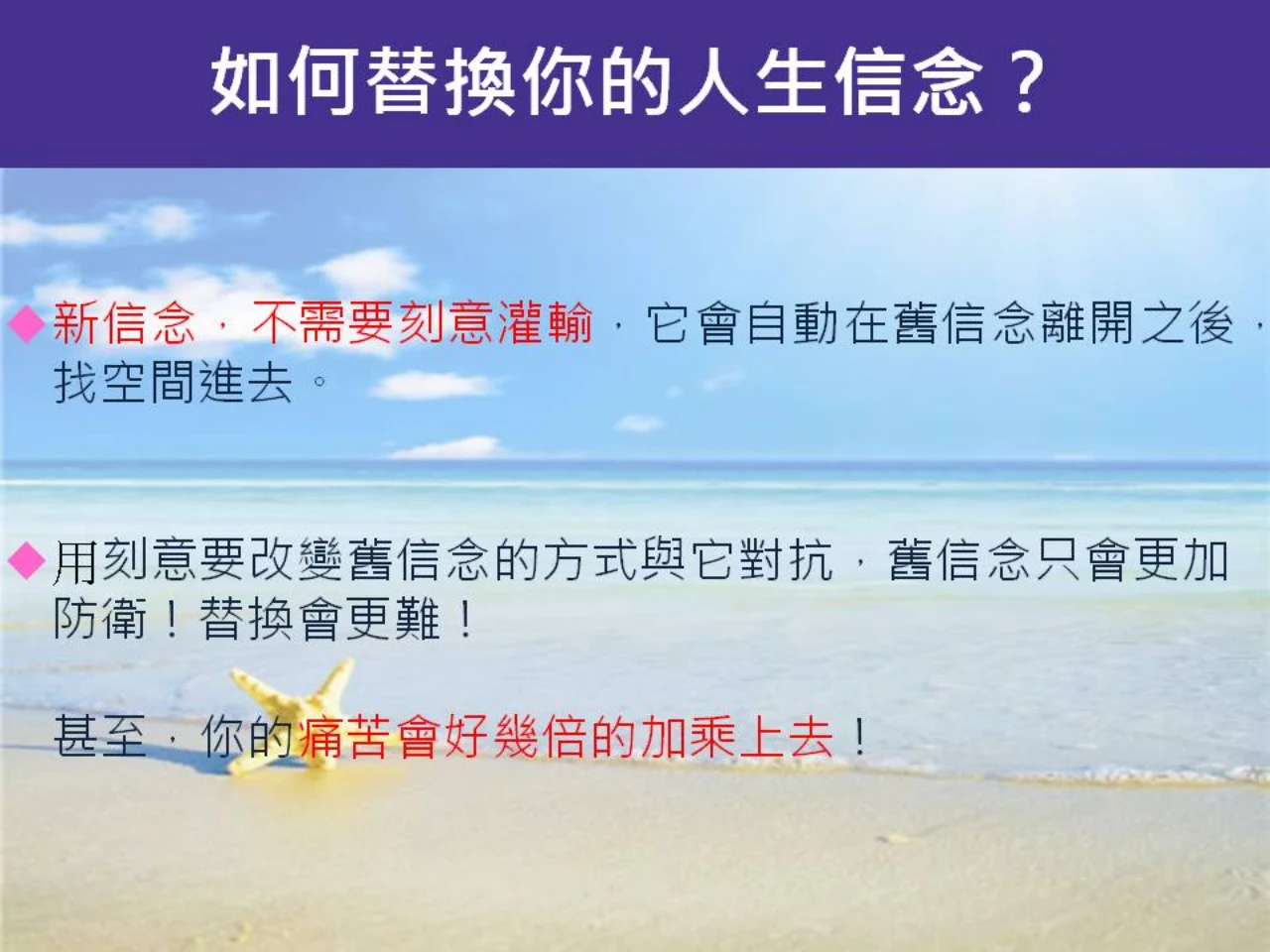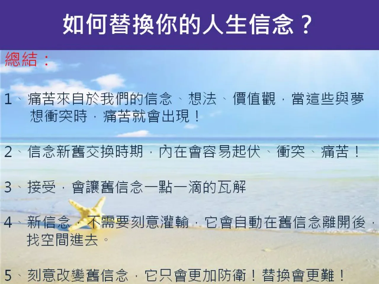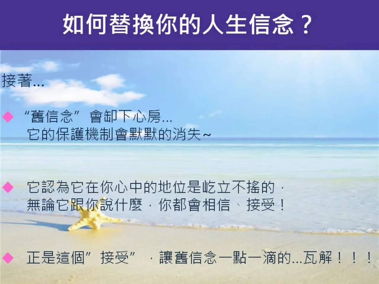 4、新信念,不需要你刻意去灌輸,它會自動在舊信念離開之後,找空間進去。
