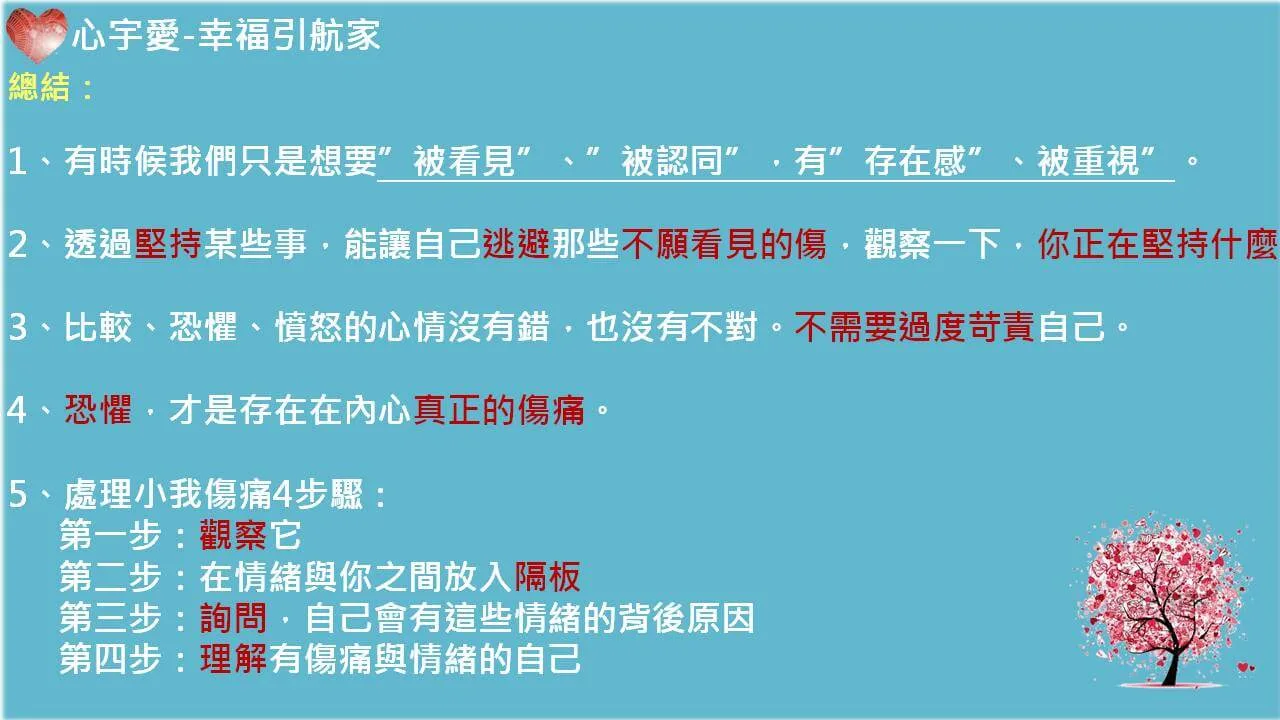 今天「4步驟,處理生活中的小我傷痛」分享就到這邊囉!