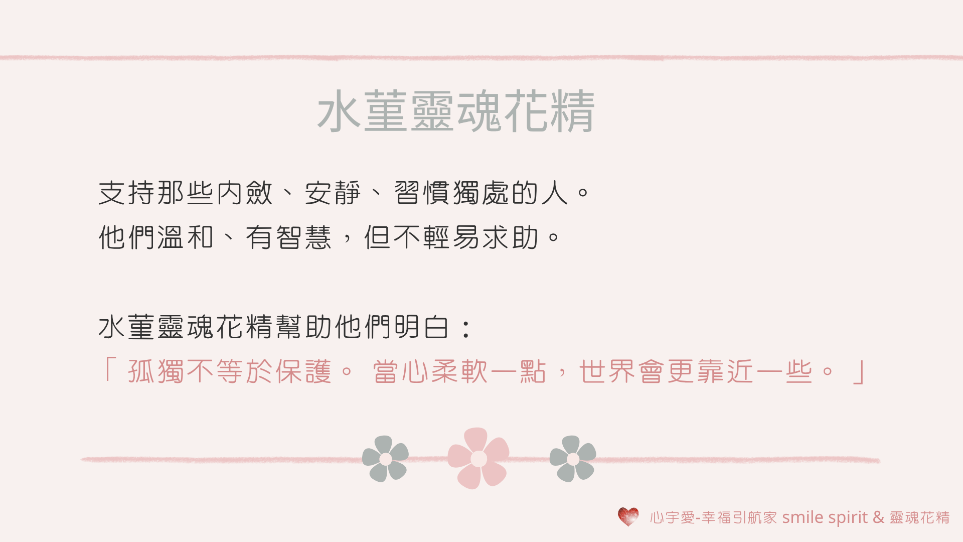 這支靈魂花精支持那些內斂、安靜、習慣獨處的人。