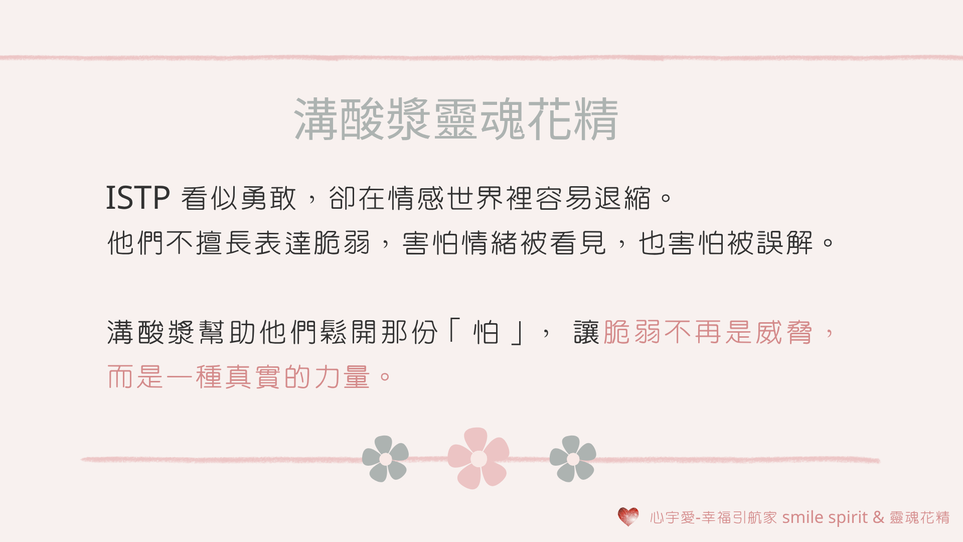 在靈魂花精的頻率中,有幾支花精正好溫柔地支持著 ISTP,