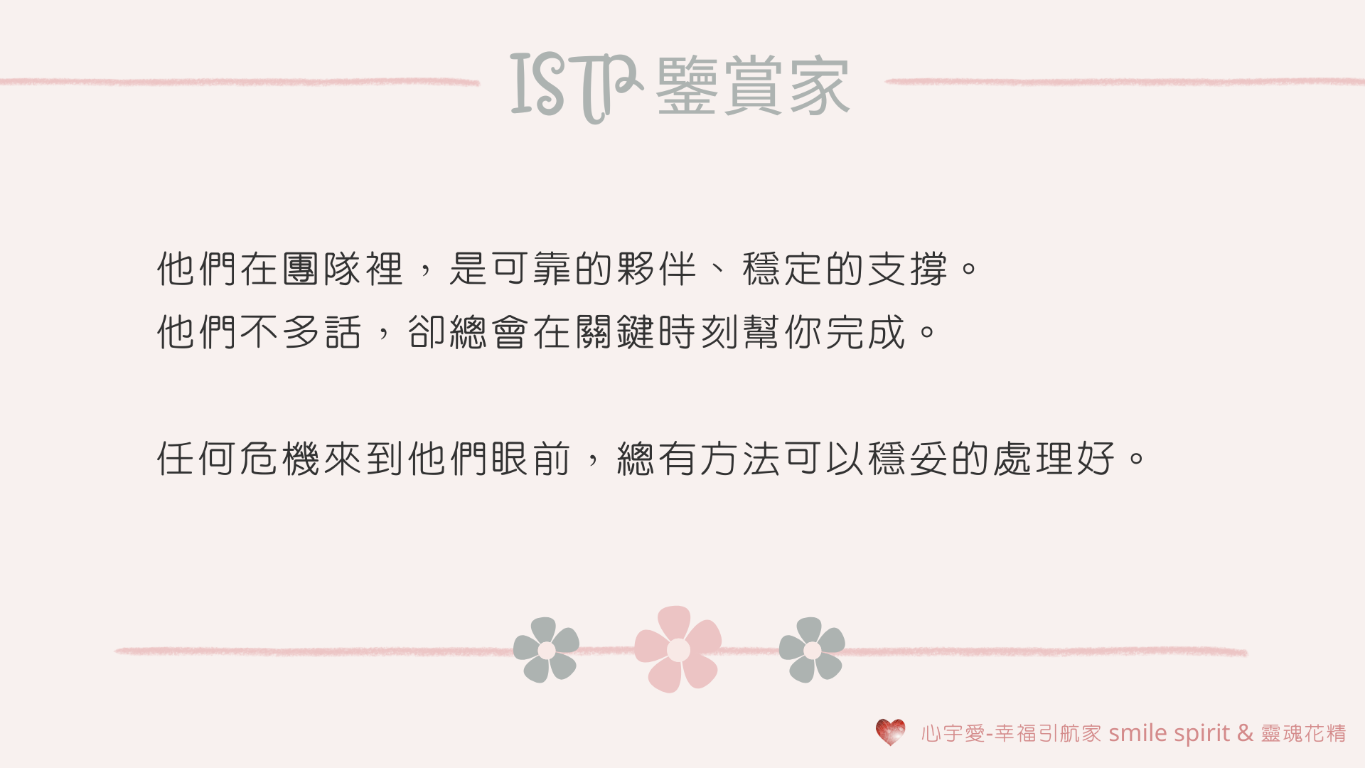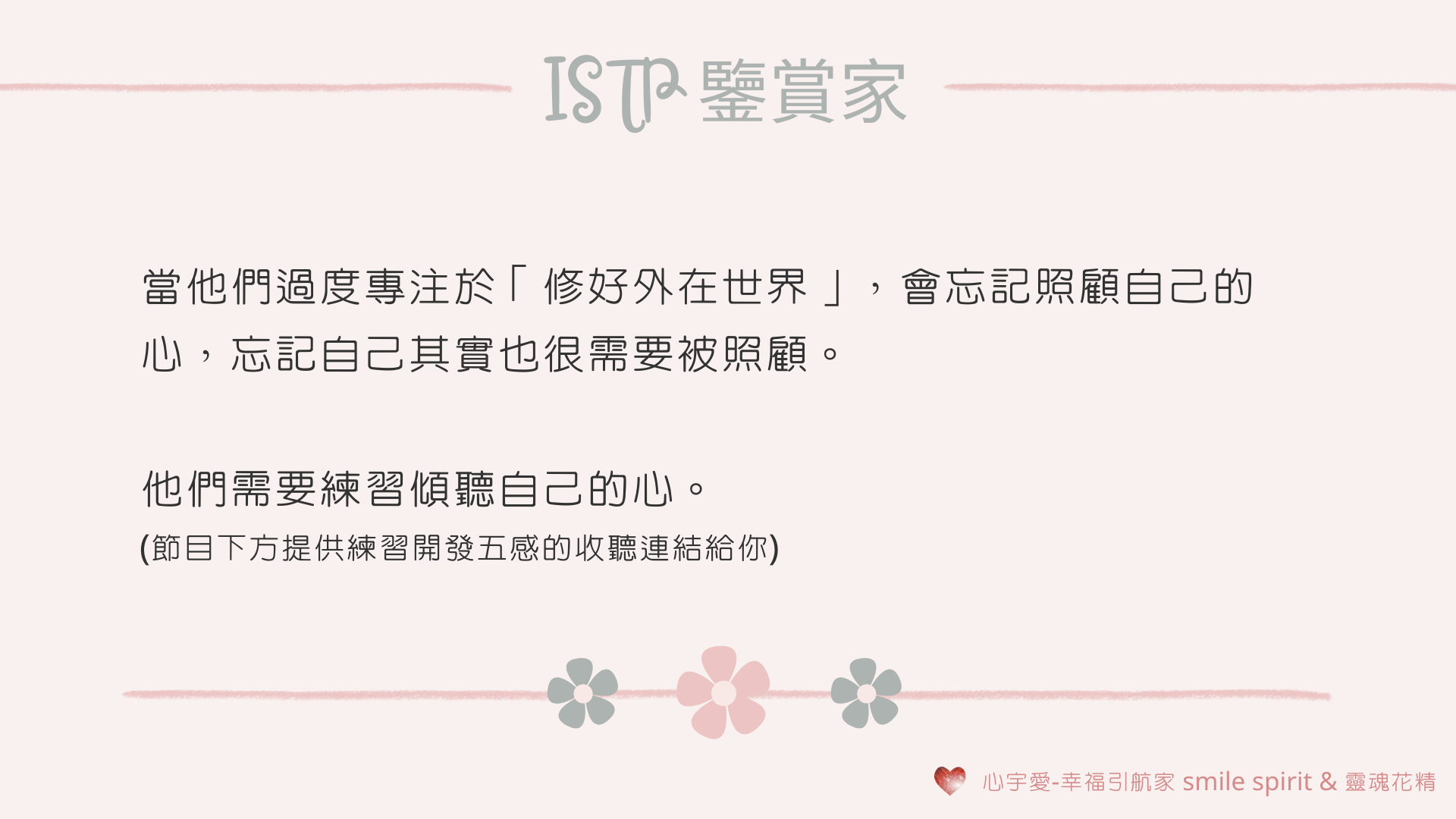 #mbti #istp #鑒賞型人格 #mbti16型人格分析 #16型人格分析 #花精 #靈魂花精 #巴赫花精 #身心靈成長 #心靈成長