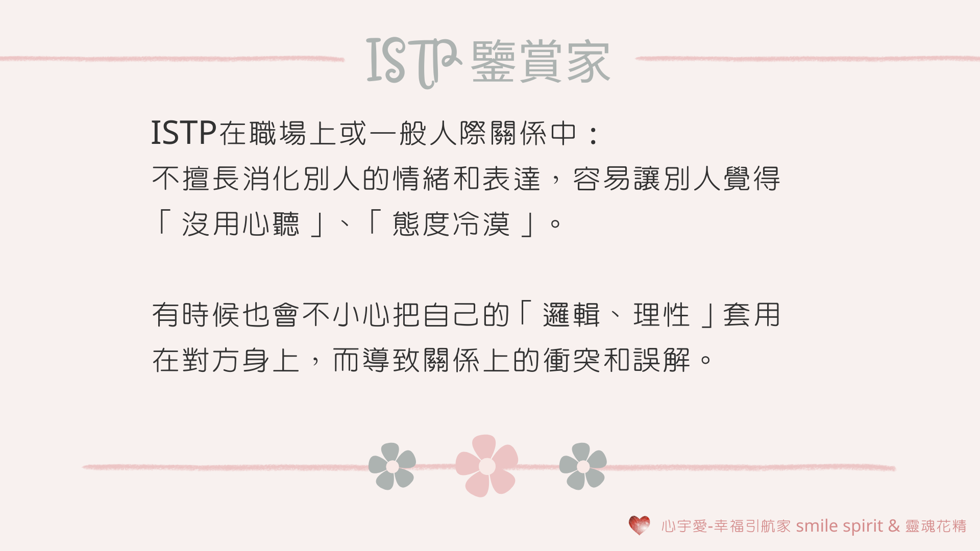 像是ISTP的部分,因為不擅長言語表達,所以在人際關係上會有一些困擾。